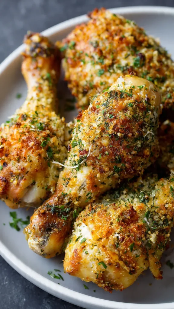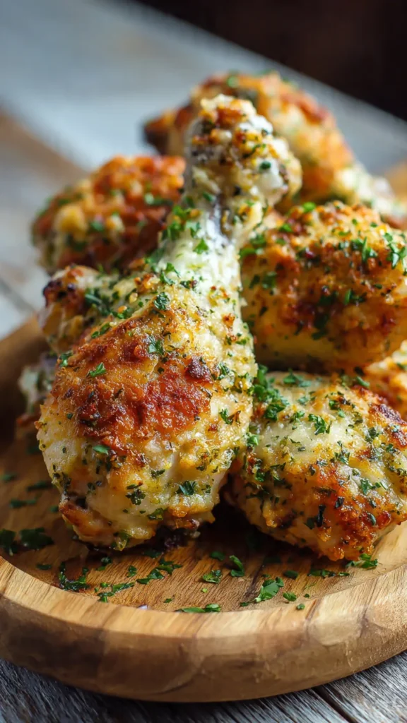 Remove the drumsticks from the oven and immediately sprinkle them with fresh chopped parsley and additional Parmesan cheese if desired. The residual heat will slightly melt the cheese, creating an extra layer of flavor. Let the chicken rest for 3–5 minutes before serving—this allows the juices to redistribute throughout the meat.