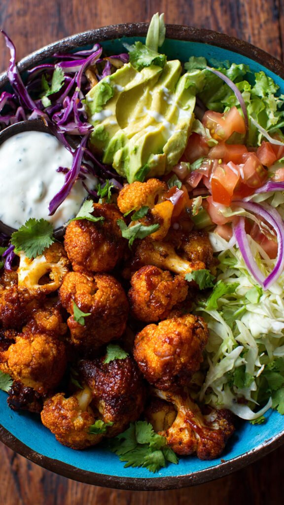 This BBQ Cauliflower Bites Bowl brings together everything you want in a complete meal. The roasted cauliflower develops crispy edges and tender centers, creating the perfect vehicle for smoky BBQ sauce. Each bite combines different textures and flavors—the crunch of fresh vegetables, the creaminess of beans, the sweetness of corn, and that irresistible BBQ tang.
