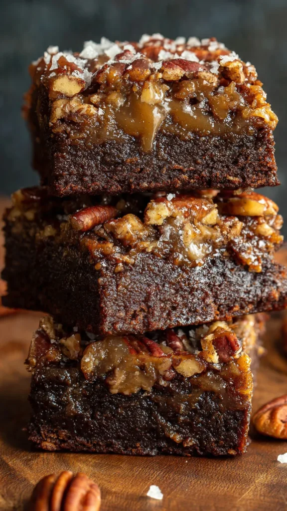 These brownies aren’t just another sweet treat—they’re a showstopper that looks like you spent hours in the kitchen but comes together with surprising ease. The dense, chocolatey base provides the perfect foundation for a glossy, nutty topping that’s reminiscent of the best pecan pie you’ve ever tasted. Each square delivers multiple layers of flavor and texture, from the intense chocolate bottom to the buttery, caramel-coated pecans on top.