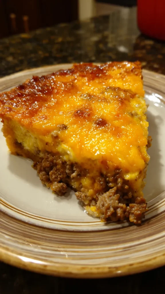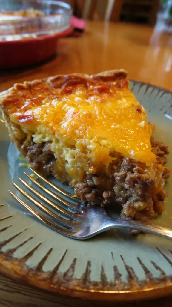 Essential Notes: Drain beef thoroughly or pie won’t set – Grease pie dish well to prevent sticking – Room temp eggs blend smoother – Don’t overbake or texture becomes rubbery – Cool before slicing for cleanest cuts – Store covered up to 4 days refrigerated – Freezes well up to 2 months – Use freshly grated cheese for best melting