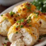 Cheesy Ranch Chicken Bombs belong to the broader category of “stuffed bread bombs” or “dough-wrapped appetizers” that gained massive popularity in American home cooking during the 2010s through food blogs and social media. These recipes represent the convenience food trend—using store-bought refrigerated dough to create impressive dishes with minimal effort. The “crack chicken” filling variation, which features cream cheese, ranch, bacon, and cheese, became a viral recipe phenomenon due to its addictively rich flavor combination. The ranch seasoning component reflects America’s obsession with ranch dressing, which has been the country’s most popular salad dressing since the 1990s. The bacon-wrapped version draws inspiration from “pig in a blanket” and other wrapped appetizers that have been party staples for decades. Today, chicken bombs remain popular for their adaptability, kid-friendly appeal, and ability to transform simple ingredients into satisfying meals or party foods.