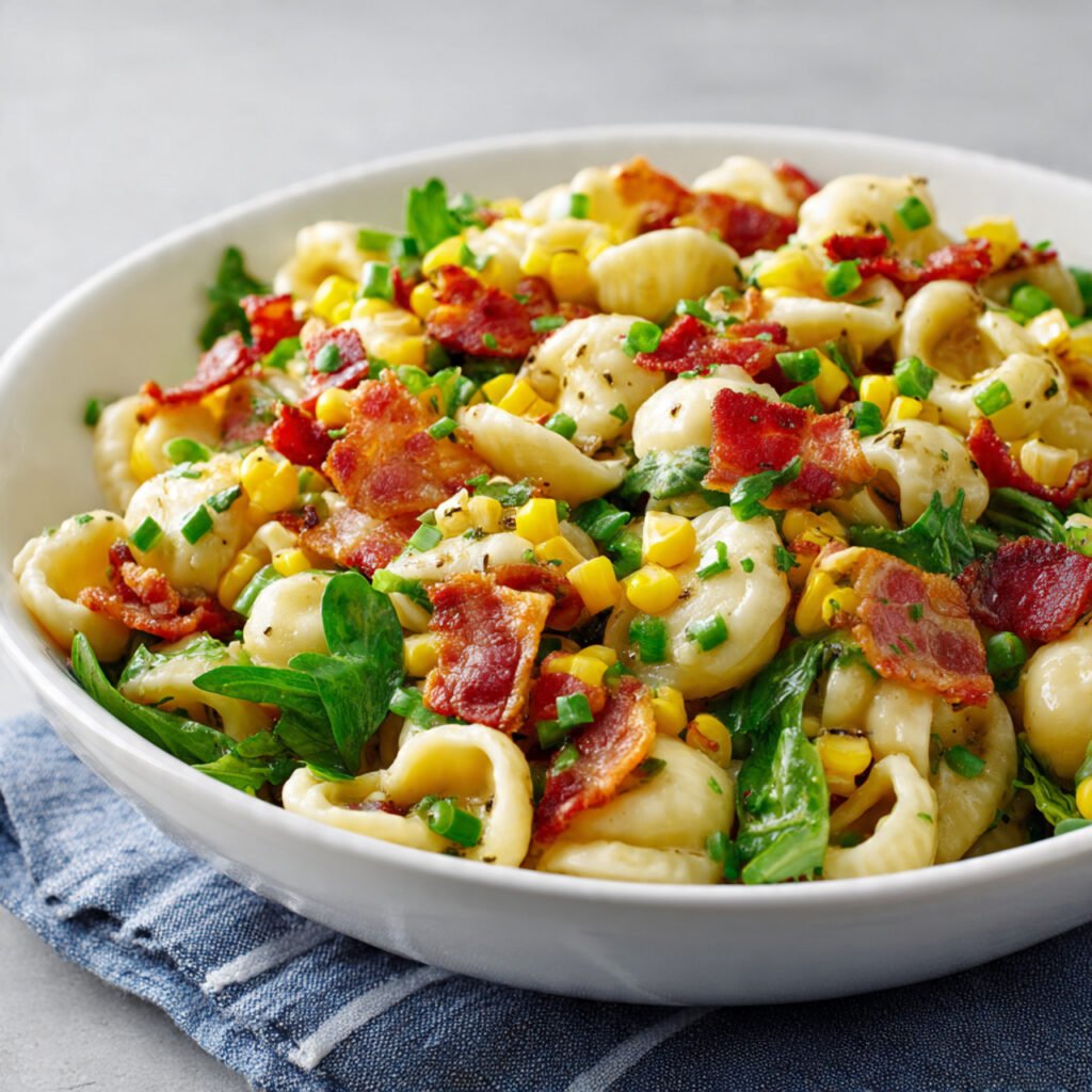 Corn pasta salad reflects modern American fusion—Italian pesto meets Southern bacon-corn tradition. Greek yogurt dressing nods to healthy eating trends while maintaining creamy appeal.