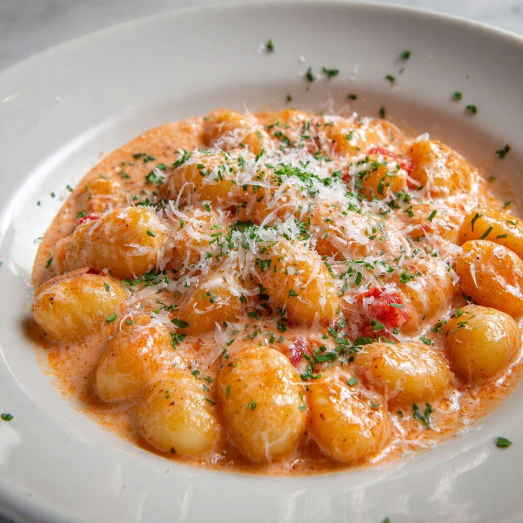 Pillow-soft gnocchi absorbs creamy tomato sauce, delivering comfort in every bite. Fresh basil and garlic elevate simple ingredients into restaurant-worthy dinner.