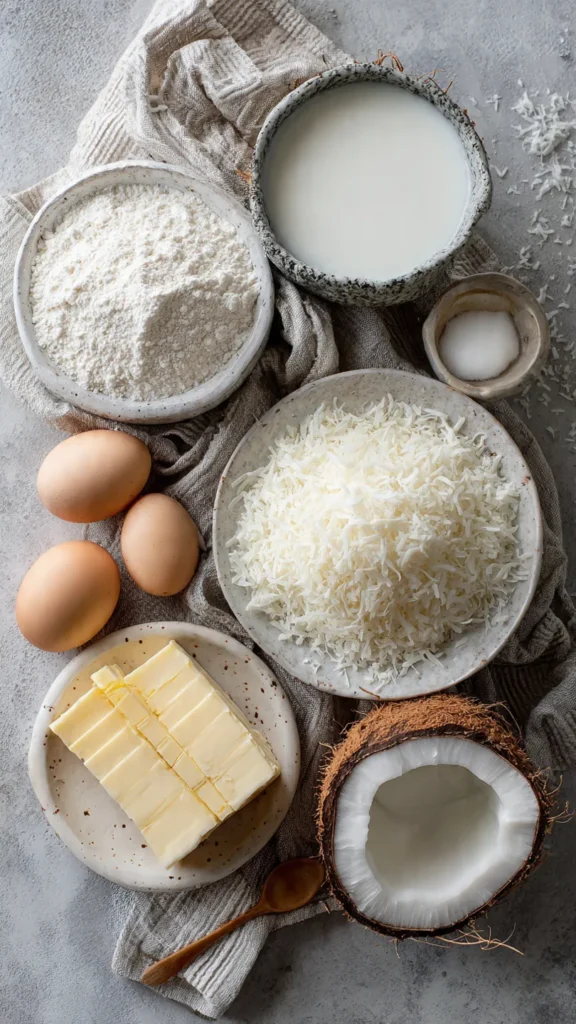 The star ingredient that defines this pie’s flavor and creates the signature golden, crispy top layer. As the pie bakes, coconut naturally rises to the surface where it toasts beautifully, creating textural contrast against the creamy custard below. Sweetened coconut adds extra tropical sweetness and caramelizes more during baking, while unsweetened coconut provides pure coconut flavor for those preferring less sugar. The coconut flakes also contribute fat and texture throughout the custard layer, creating pockets of chewiness. Quality matters—look for moist, fresh-smelling coconut rather than dry, stale flakes that won’t toast properly.