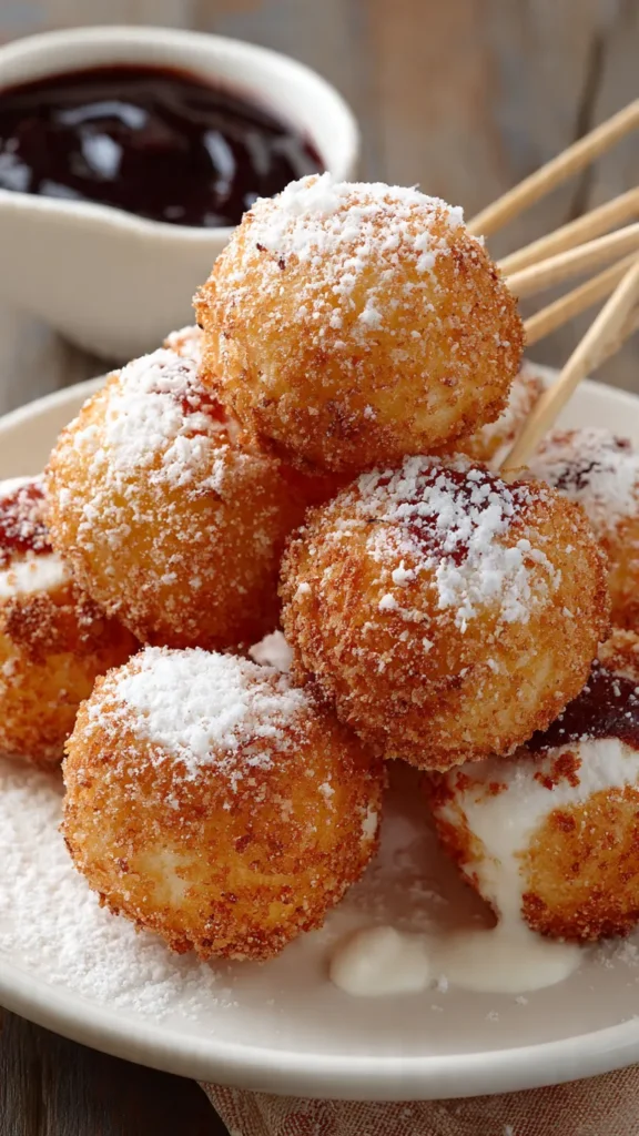 Fruit Addition: Add a strawberry or banana slice to skewers before battering—the fruit caramelizes beautifully when fried.