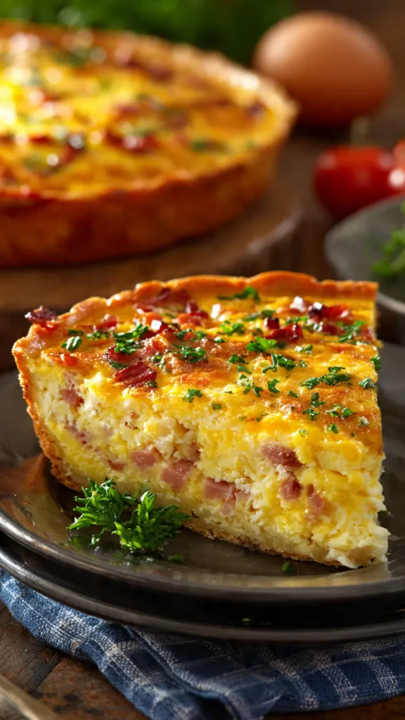 What makes this recipe so beloved is its incredible versatility and make-ahead convenience. Using a store-bought pie crust eliminates the most time-consuming step, while the filling comes together in minutes with just a simple whiskingโno stovetop cooking required. Ready in about 50 minutes from start to finish, this quiche can be prepared the day before and reheated, making it ideal for busy mornings or entertaining without stress. Whether you’re using up leftover holiday ham or starting fresh with deli ham, this quiche is the ultimate comfort food that works for breakfast, brunch, lunch, or even a light dinner. Serve it with a simple green salad and fresh fruit for a complete, satisfying meal.
