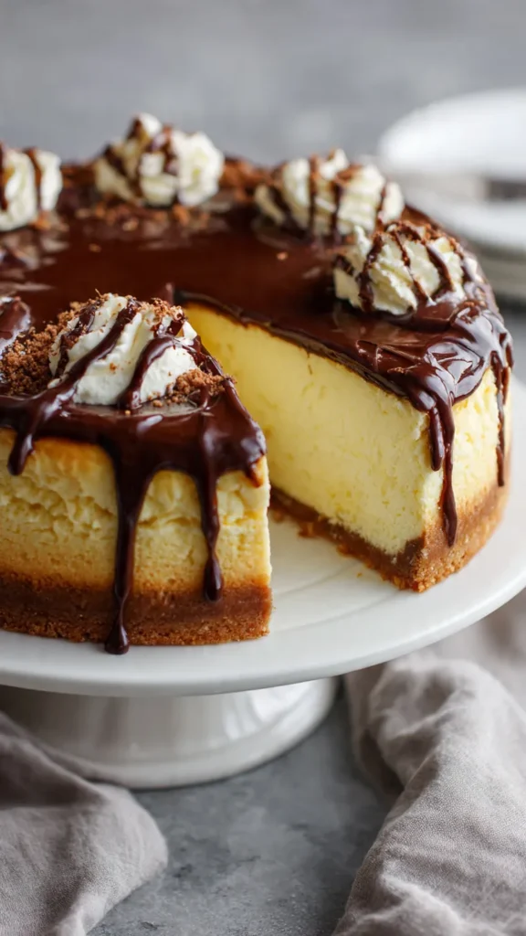 If you’ve ever dreamed of combining two beloved desserts into one spectacular creation, this Boston cream cheesecake is your answer. This showstopping dessert masterfully merges the elegant richness of classic cheesecake with the iconic flavors of Boston cream pie. The result is a multi-layered masterpiece that features a buttery graham cracker foundation, a velvety cream cheese base, silky homemade vanilla pastry cream, and a glossy chocolate ganache crown.