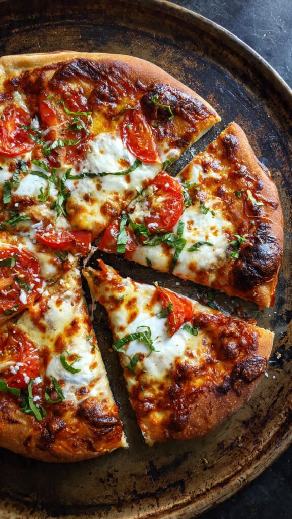 Slice into 6–8 pieces and serve immediately while the crust remains crisp and the cheese stretches with each bite.