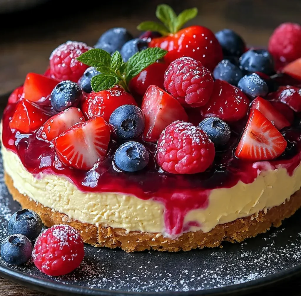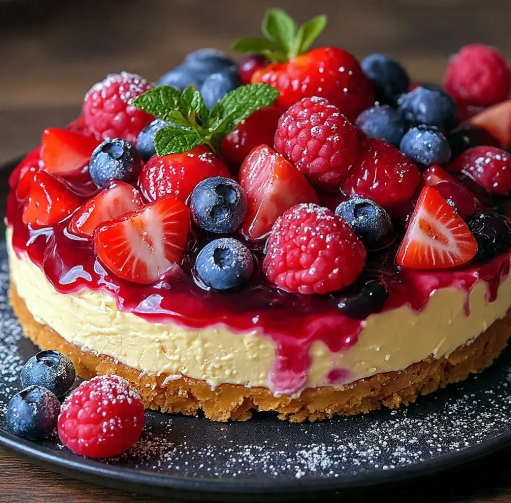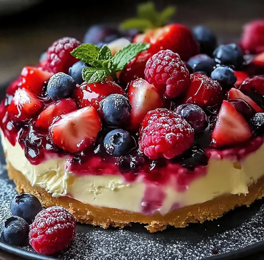 What sets this recipe apart is the stunning berry topping. Fresh strawberries, blueberries, and raspberries not only add gorgeous pops of color but also bring a delightful tartness that perfectly balances the sweetness of the creamy filling. The combination of textures—from the crunchy crust to the silky filling to the juicy berries—creates a multi-dimensional dessert experience that will have everyone asking for seconds.