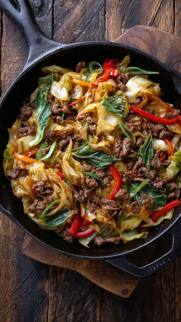Budget-conscious cooks will appreciate that ground beef and cabbage are affordable staples available year-round. The recipe’s flexibility means you can adapt it to whatever vegetables are on sale or need using from your refrigerator. With minimal prep work and quick cooking time, it’s realistic for busy weeknights when time is precious.