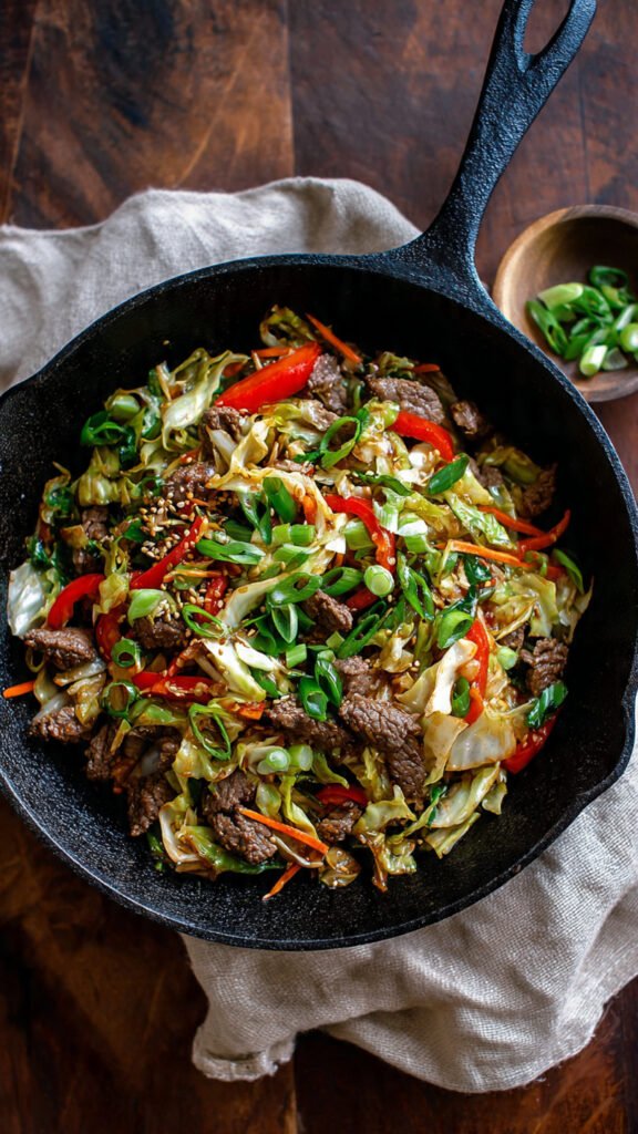 This Savory Low-Carb Cabbage & Beef Stir Fry succeeds because it balances nutrition with flavor while respecting your time. At just 6g net carbs per serving, it fits perfectly into ketogenic and low-carb meal plans. The combination of protein-rich beef and fiber-packed cabbage keeps you satisfied without weighing you down.
