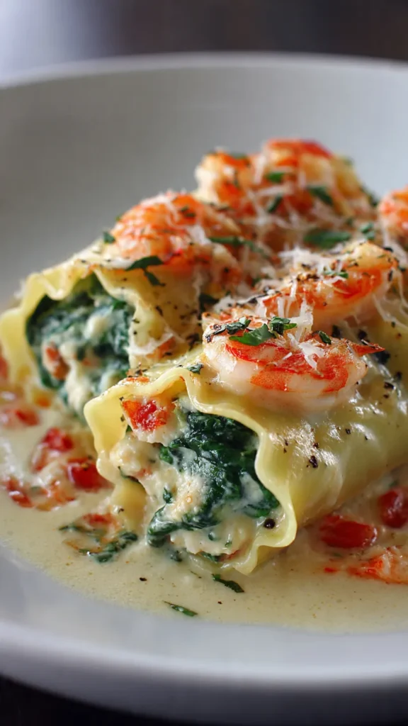 Whether you’re an experienced home cook looking to expand your repertoire or someone building confidence in the kitchen, Shrimp and Spinach Stuffed Pasta Rolls with Roasted Red Pepper Cream offers the perfect combination of approachability and sophistication. It’s forgiving enough for beginners yet impressive enough for experienced cooks to serve with pride. Most importantly, it delivers exceptional flavor that brings people together around the table, creating memorable meals and moments worth savoring long after the last bite.