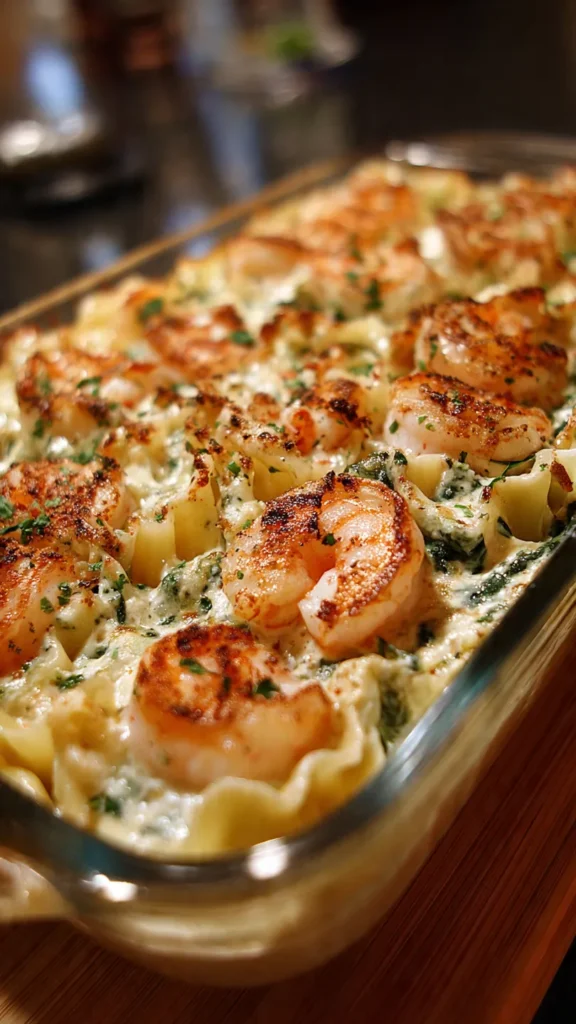 Variations and substitutions let you customize this recipe to your preferences. Add a pinch of red pepper flakes to the filling for subtle heat, or stir in sun-dried tomatoes for extra Mediterranean flavor. Fresh herbs like basil, oregano, or thyme can be mixed into the filling or sprinkled on top before serving. For a more budget-friendly version, replace half the shrimp with finely chopped chicken breast or use all chicken instead. The recipe also works beautifully with jumbo pasta shells instead of lasagna noodles—simply stuff the shells with the filling and proceed with the same sauce and baking instructions.